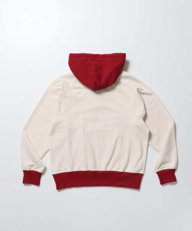 これにワッフルサーマルを裏地にしたフードを取り付け、スウェットパーカ黎明期のディテールを再現しています。