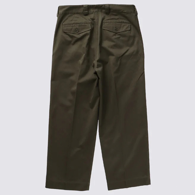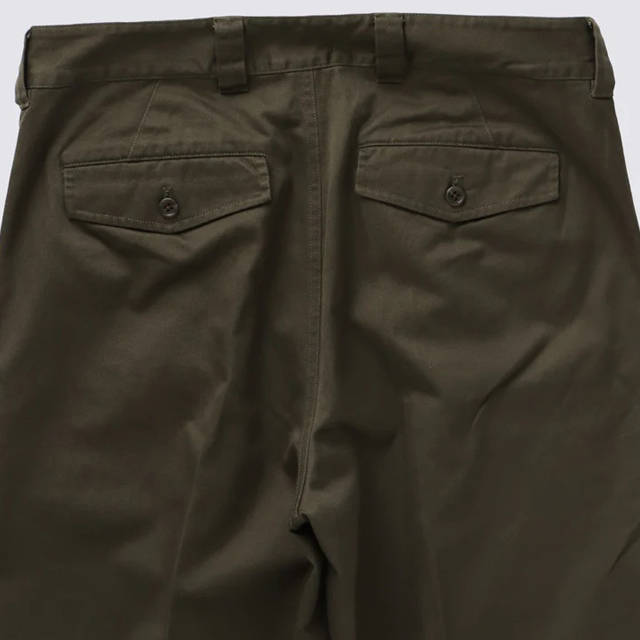 オリジナルのM-52を彷彿とさせる深めの股上、2タック入りの腰周り、そしてフラップ付きバックポケットなど、クラシックなディテールを忠実に再現。