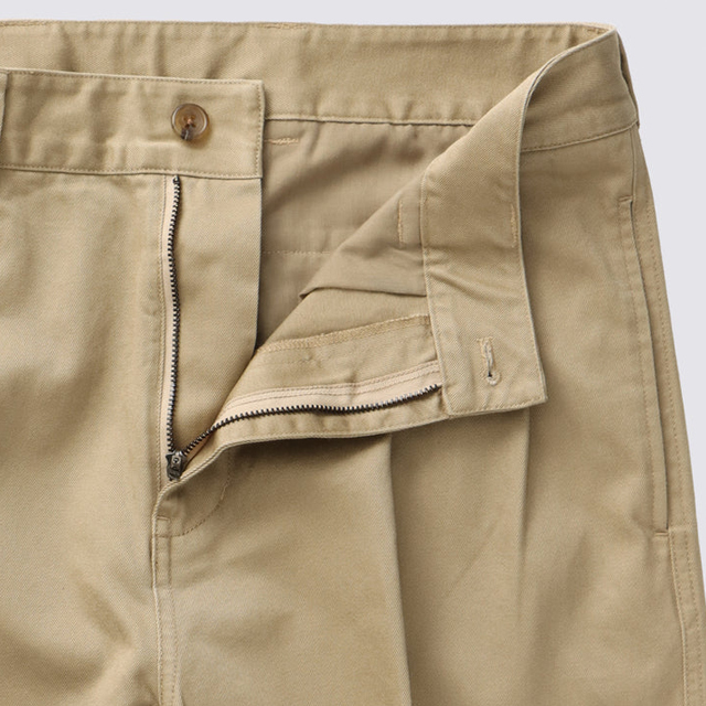 ZIPフライ仕様で着脱もしやすく、ミリタリーパンツ特有の無骨さは程よくマイルドに。