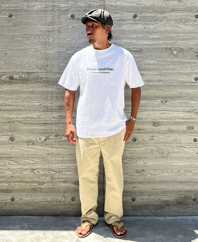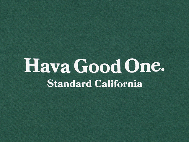 スタンダードカリフォルニアのキャッチコピーでもある "HAVA GOOD ONE" をモダンでアカデミックな雰囲気のフォントで。