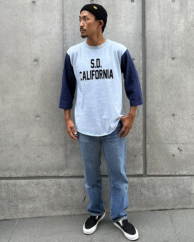 古着のような風合い、経年変化を楽しみたい方にはオススメのベースボールTシャツです。