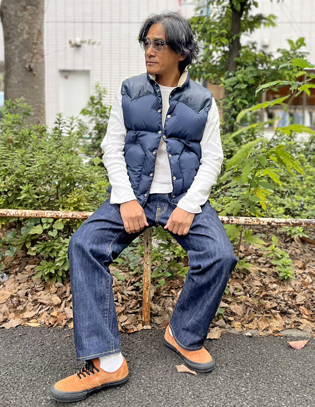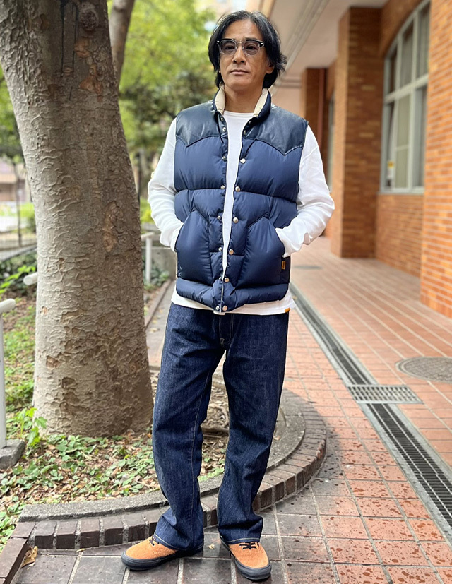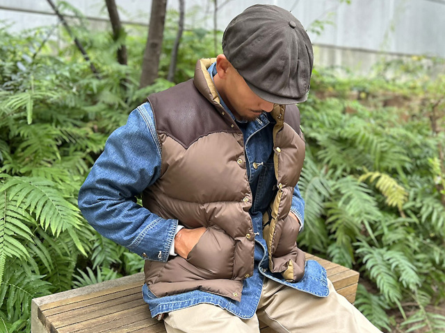 そんなロッキーマウンテンフェザーベッドにスタンダードカリフォルニアが別注したのは、ブランドのアイコン的存在のダウンベスト。