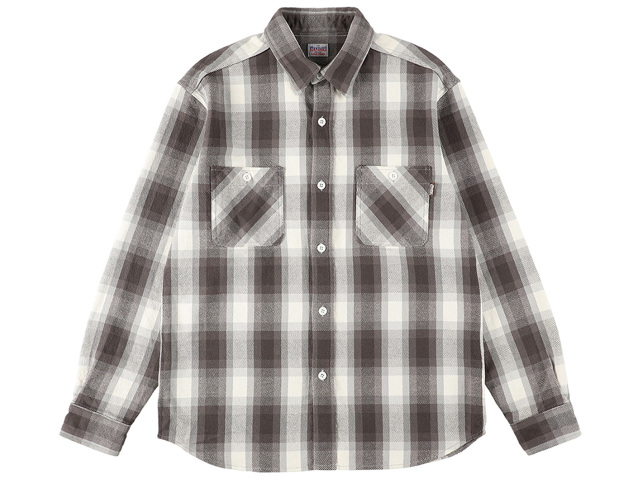 オンブレーのような雰囲気のブロックチェック柄が特徴で、長年着込んで退色したような柔らかい色合いに仕上げられています。