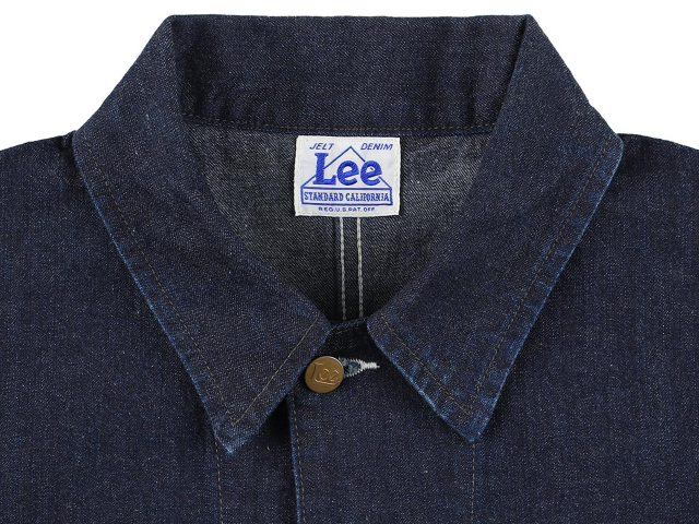 襟元のネームは当時のハウスタグをベースに作成した贅沢なLeeとスタンダードカリフォルニアのダブルネーム。