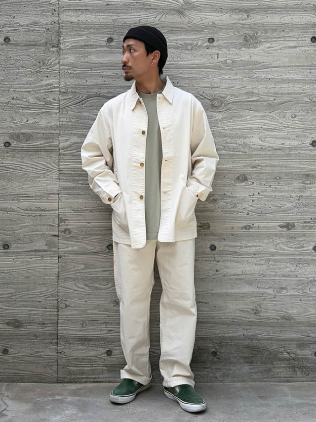 デニムやチノパンと合わせた王道スタイルはもちろんのこと、すっきりとしたデザインなのでセットアップもおすすめです。
