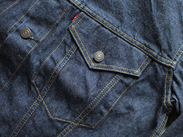 チェーンステッチ部分は全てユニオンスペシャルで縫製、胸ポケット裏はライトオンスのデニム生地を使用。