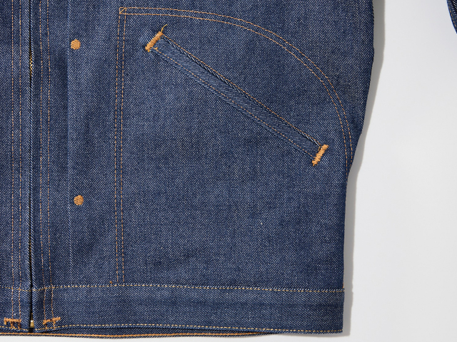 モデル最大の特徴であるブラウン×グリーンのラインが入ったセルビッジが映える左綾デニムも忠実に再現しています。