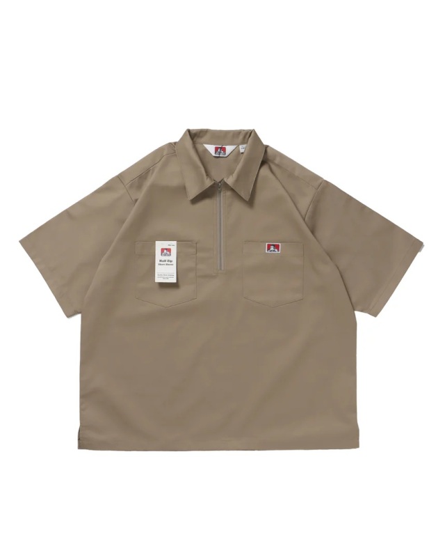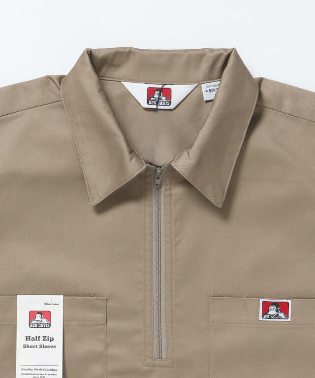 • BEN DAVIS HALF ZIP S/S WORK SHIRT BEIGE