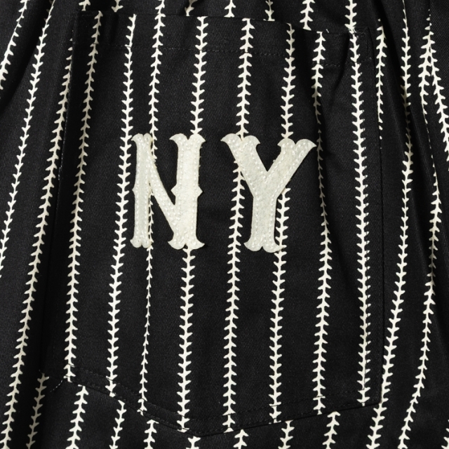 ボールの縫い目をストライプデザインに落とし込んだ、シンプルでありながら個性的なBall Seam Stripeのシェフパンツです。