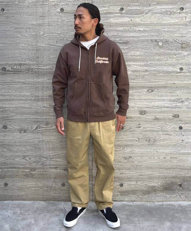 ボディはサラッとしたドライな生地感が特徴のUSコットンを使用し、着脱がスムーズで、ブルゾン感覚で重ね着しやすいジップフードタイプ。