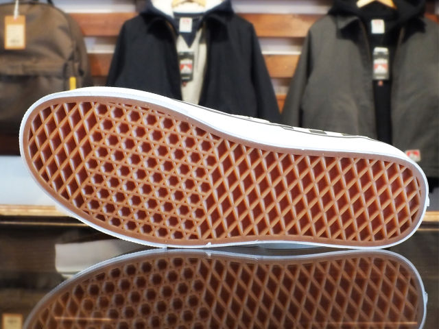 アウトソールはVANSの代名詞ワッフルソール、ヒールには”OFF THE WALL”パッチが付きます。